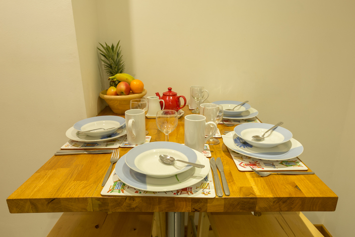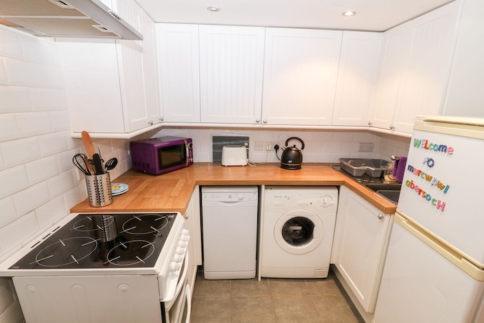 There is a fully equipped cosy kitchen with breakfast bar and all facilities to seat 4.