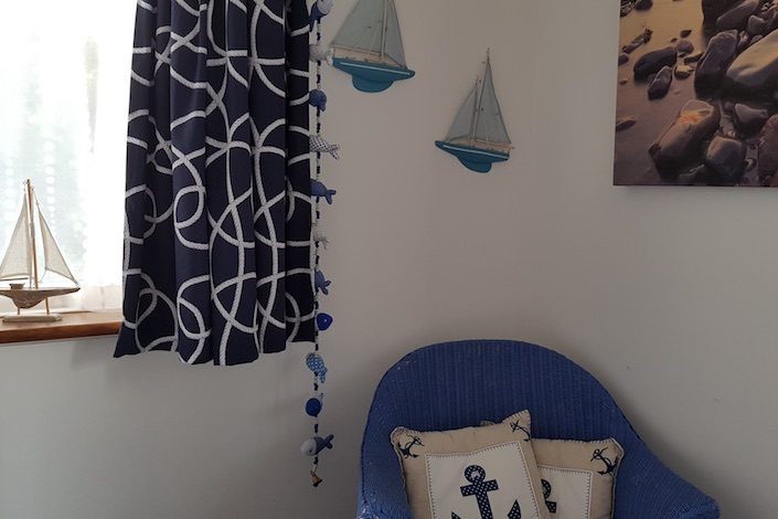 The spacious master bedroom has lovely nautical styling and plenty of cupboard space with superb views, and the pretty twin bedroom has a delightful floral twist, again with plenty of storage.